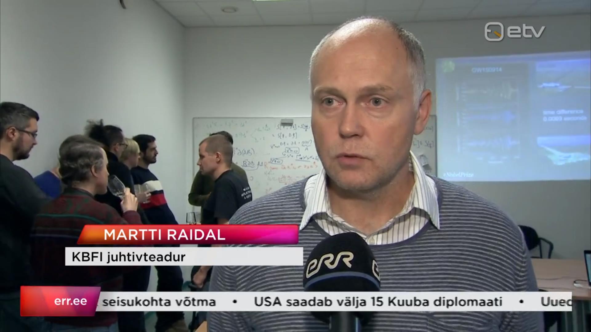 03. oktoober 2017KBFI Kõrgete energiate ja arvutusfüüsika labortooriumi juhataja ja juhtivteadur Martti Raidal kommenteeris ETV uudistesaates Aktuaalne Kaamera 2017. aasta Nobeli füüsikapreemia pälvinud avastuse seotust oma grupi uurimistööga.Rohkem -